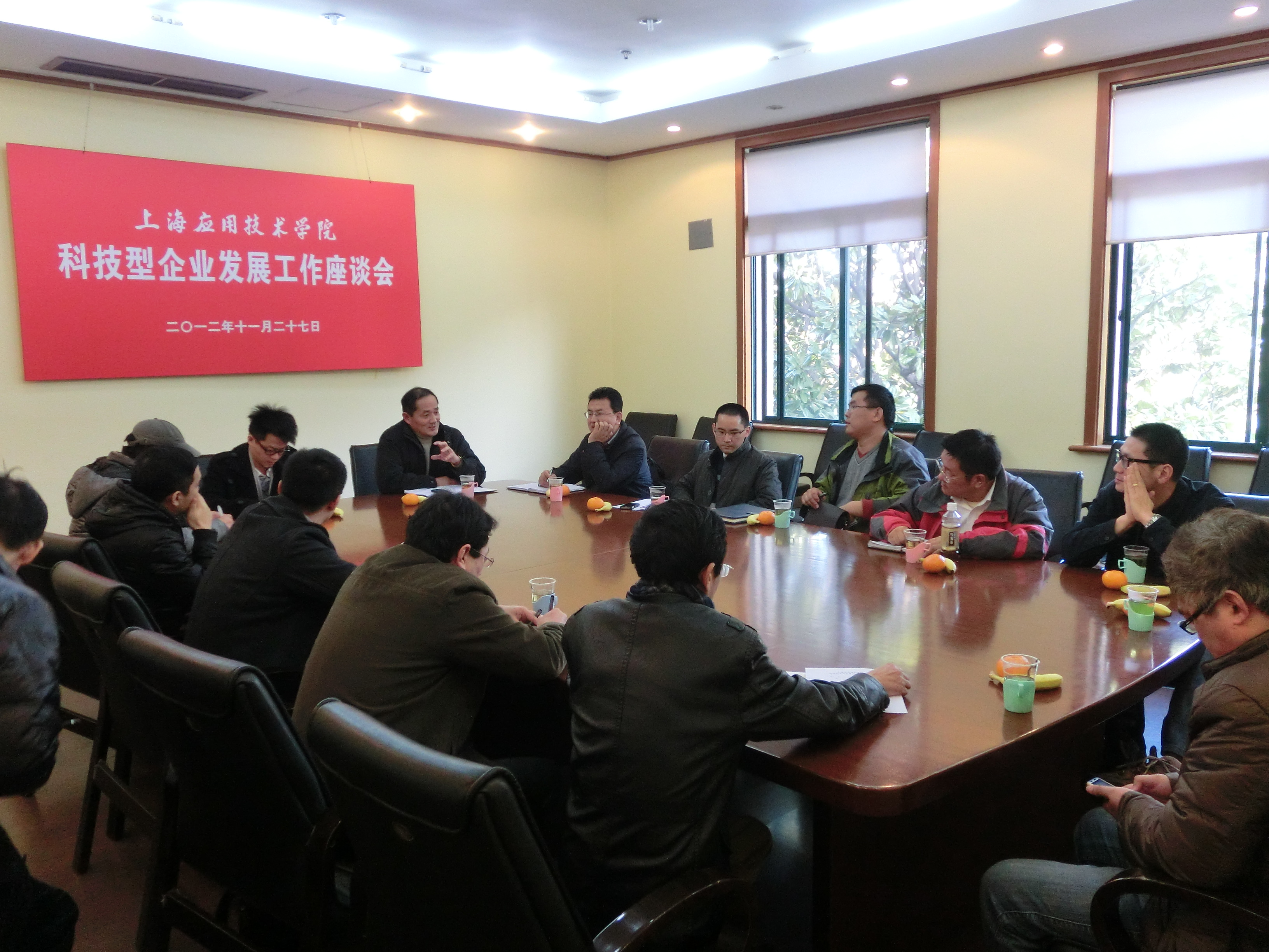 11月27日,学校科技处与资产经营有限公司共同召开学校科技型企业发展工作座谈会。会议在漕宝路校区举行,出席座谈会的有部分二级学院分管领导、科研骨干教师、科技型筹备企业代表和科技处与资产经营有限公司领导。