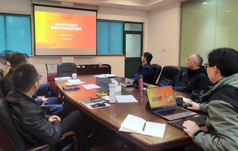 应翔公司副总经理张化以《后DeepSeek时代应翔各公司的机遇与应对》为题向中心组成员做领学,主要介绍了DeepSeek大模型在低成本、高效能和战略自主方面的突破创新,应翔、科技园职工在工作和生活中如何应用DeepSeek模型,重点分析了香料所AI+业务模块重构的可能性,在检测业务智能化、学术期刊智能编审与知识萃取、企业人员个性化培训和行业标准RAG知识库构建等方面进行创新尝试,以及实施技术路线与落地预算分配情况。