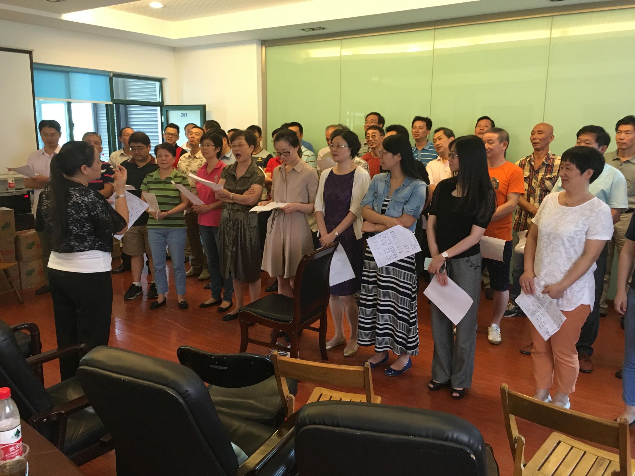 为纪念中国共产党建党95周年和中国工农红军长征胜利80周年的合唱排练活动在学校大礼堂举行。公司党政班子、全体在岗职工及部分休岗职工共计52人克服各种困难,正全力抓好排练和筹备工作。